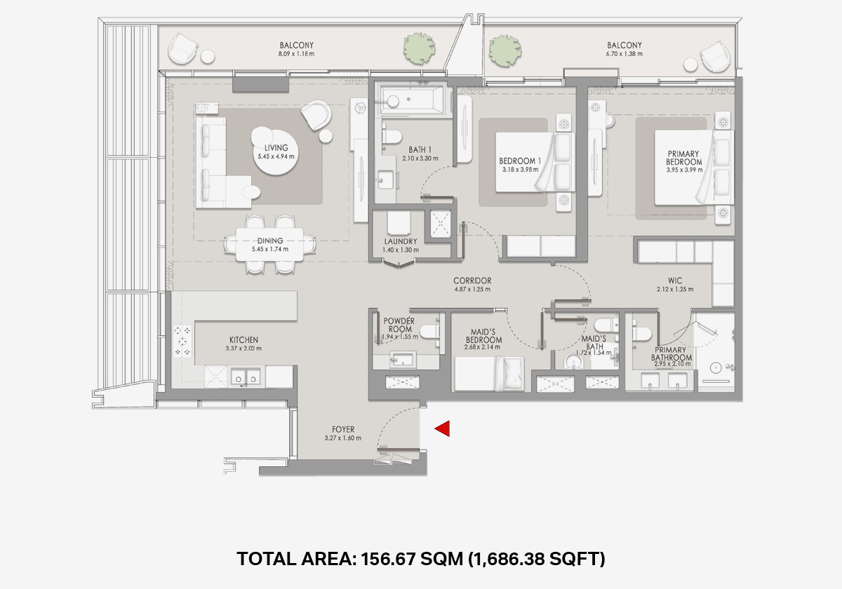 **Disclaimer: The interior and exterior finishes displayed in this tool\are for illustrative purposes only. The actual finishes may vary significantly from what is shown here. All furniture used is also for illustration only. Refer to the project’s photos and videos available on our website for a more realistic representation of the finishes of the units.